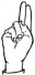 На ћирилици написано НИКОЛИНА СЕКУЛОВ састоји се из 15 слова [?]. Исписано ћириличном једноручном азбуком за глувонеме: